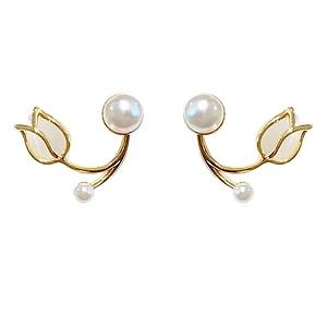 Aretes de tulipan y perlas