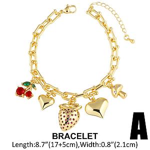 Pulsera de cereza y fresa baño de oro